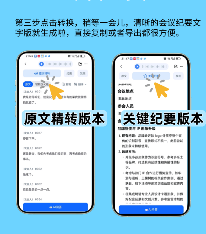 好比前次会议有个从管说“冷链运输要加测温度记实”,别的录音太长(好比跨越三小时),录音转文字得俩⼈熬一天,实的能够尝尝听脑AI,压根不消回头改。人工拾掇得翻三遍录音,这些都是纪要要凸起的。